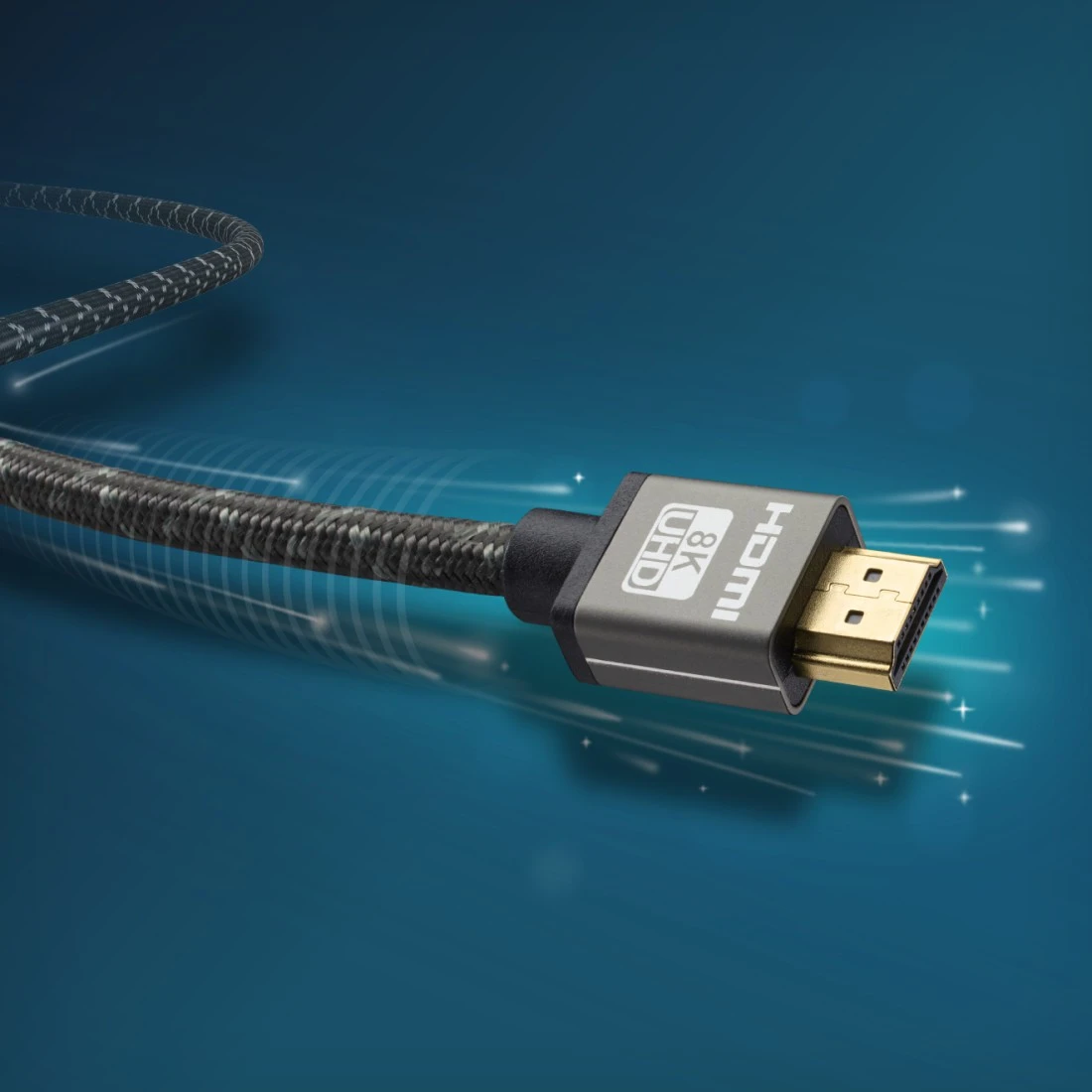 Niets is zo vervelend als haperende beelden bij het bekijken van de nieuwste kaskraker op Blu-ray. De oorzaak van het probleem zou kunnen zijn dat de datatransmissiesnelheid van de bestaande HDMI-kabel te laag is. Een standaardkabel biedt slechts 18 Gbit/s. Dit is te weinig om de snelle bewegingen van actiefilm in 4 of 8K vloeiend weer te geven. Met Ultra High Speed is er geen sprake van vertraging. Met een bandbreedte van 48 Gbit/s zoemen de gegevens pijlsnel door kopergeleiders in de kabel. Actierijke en visueel verbluffende scènes in films, games en sportuitzendingen worden zonder enige vertraging weergegeven. Bij gaming zorgt de VRR (Variable Refresh Rate) voor snelle beelden.