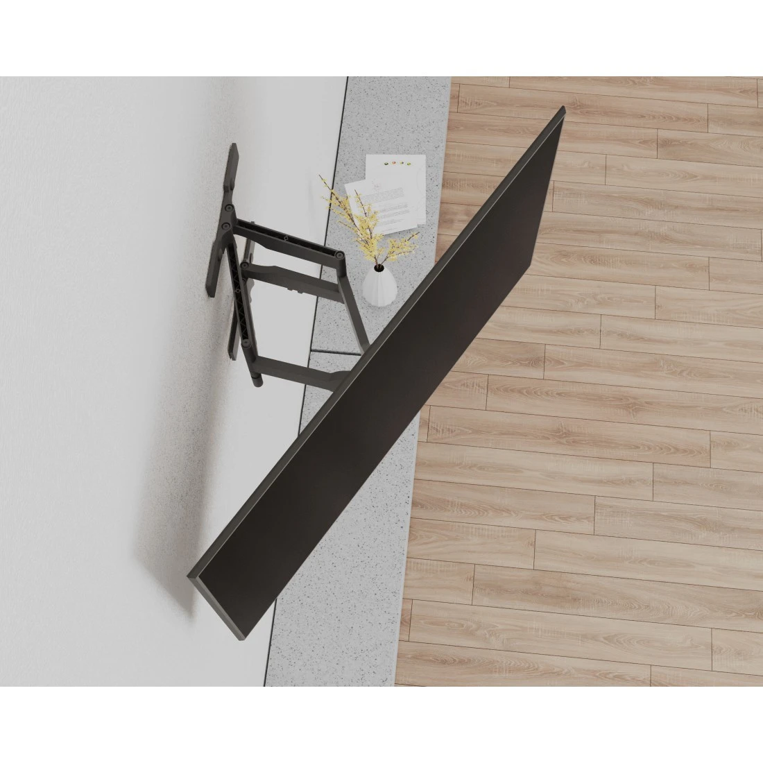 Esthetisch en flexibel: Dankzij de kleine afstand tot de muur van 2,3 cm past de tv-muurbeugel met het ultravlakke profiel onopvallend in de leefomgeving en garandeert hij volledige bewegingsvrijheid in alle richtingen