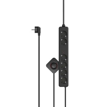 Hama Stekkerdoos, 6-voudig, voetschakelaar, 3 m (2x 1,5m incl. schakelaar), zwart