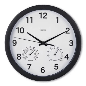 Hama Wandklok "Malta", Ø 25 cm, met thermo- / hygrometer, tikt niet, zwart